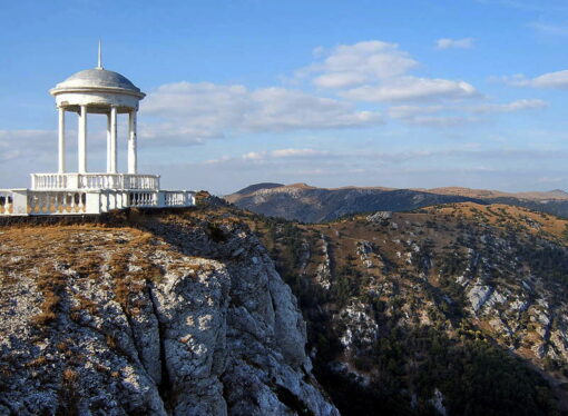 Беседка Ветров расположена на самом краю скалистого обрыва, в гурзуфской долине. Она похожа на каменную колоннаду под куполом и находится в 1450 метрах над уровнем моря. Гора, на которой построили беседку Ветров, называется Шаган-Кая (что в переводе с тюркского означает соколиная скала). Построена она в далеком 1956 году. Диаметр колоннады равен четырем метрам, а высота беседки более шести.