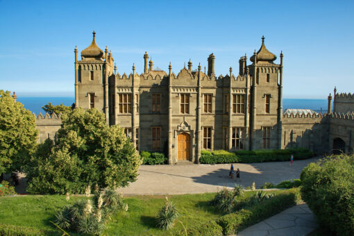 В центре города Алупка среди деревьев старинного парка красуется легендарный Воронцовский дворец – уникальный памятник архитектуры XIX в. Дворец построен в эпоху романтизма, он впечатляет современного туриста особыми архитектурными формами. Планировка не имеет аналогов, оригинальное стилевое решение всех корпусов, искусность, с которым выложены стены и, главное, отделка внутри — все это изумляет и восхищает уже не одно поколение ценителей красоты. Сотни вольнонаемных рабочих, а так же крепостных вложили свою душу, труд и талант в это творение. Отличительной чертой дворца является грамотно использованный рельеф местности, иногда кажется, что дворец вырастает из самой природы.
