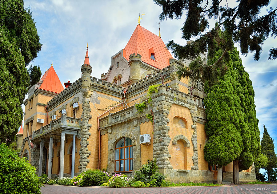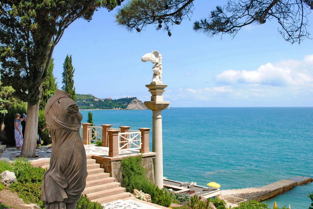 Выезд из гостиницы. Экскурсионный переезд, посещение поместья с парком княжны Гагариной. Дворец в настоящее время является административным корпусом санатория «Утес». Он напоминает собой средневековый замок. Его мощные каменные стены увиты плющом, а красная крыша видна издалека. Рядом с дворцом на одной из клумб находятся восхитительные цветочные часы, вокруг по соседству с местными привычными растениями обитают довольно редкие виды. В парке даже в самые жаркие дни царит прохлада. Территория парка примыкает к мысу Плака. Тем, кто решится на него подняться, откроется восхитительная картина южного побережья.